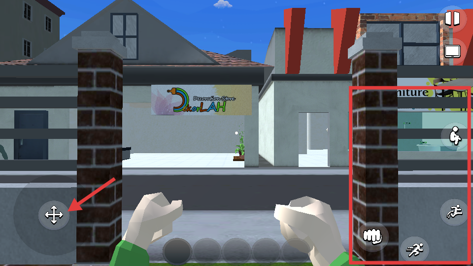 2、進入游戲場景中,通過左側虛擬搖桿移動角色,右側的動作按鈕可讓角色做出不同行為,與周圍環境互動。