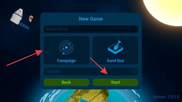 2、在New Game界面,可選擇Campaign或Sand Box模式,還能開啟Tutorial,選好后點擊Start開始游戲。
