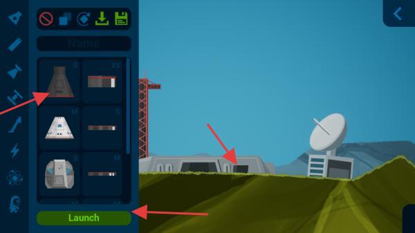 3、進入游戲后,從左側選擇火箭部件,將其放置到合適位置,完成火箭組裝,然后點擊Launch發射火箭。