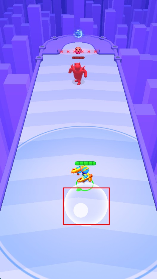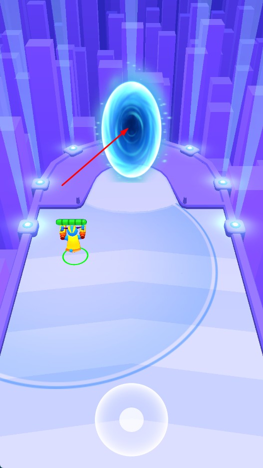 1、進入游戲操控角色,通過點擊屏幕上的圓形操控區域,能讓角色在通道上移動,準備迎接前方的敵人與挑戰。