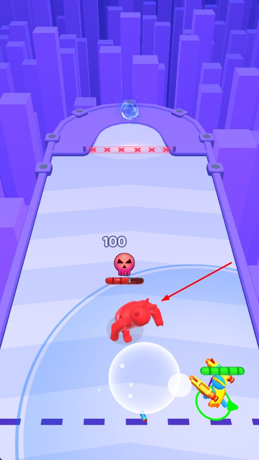 2、遇到紅色敵人時,操控角色用武器射擊,成功擊中敵人后,敵人會被擊敗,還能獲得相應分數,助力闖關。