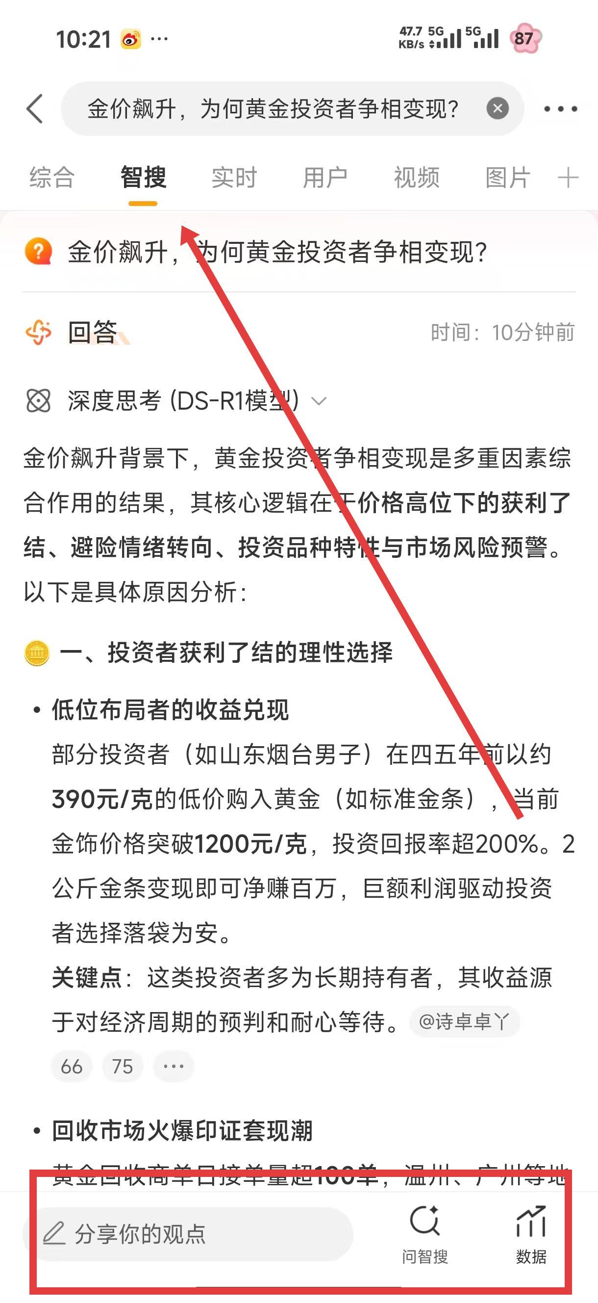 3、在問題詳情頁面,查看相關的回答內容,了解不同觀點,看到分享你的觀點輸入框,點擊該輸入框。