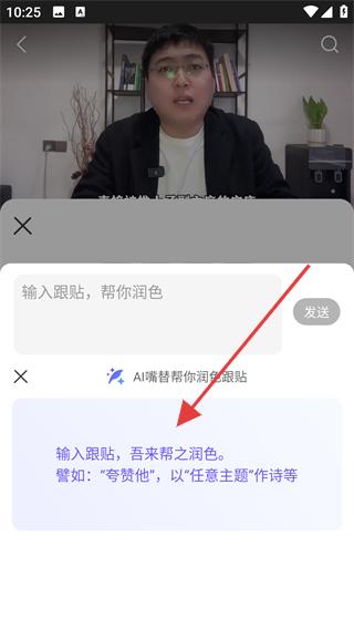 4、在寫跟貼時可使用AI潤色功能,輸入跟貼內容,讓AI幫忙潤色,提升跟貼的表達效果。
