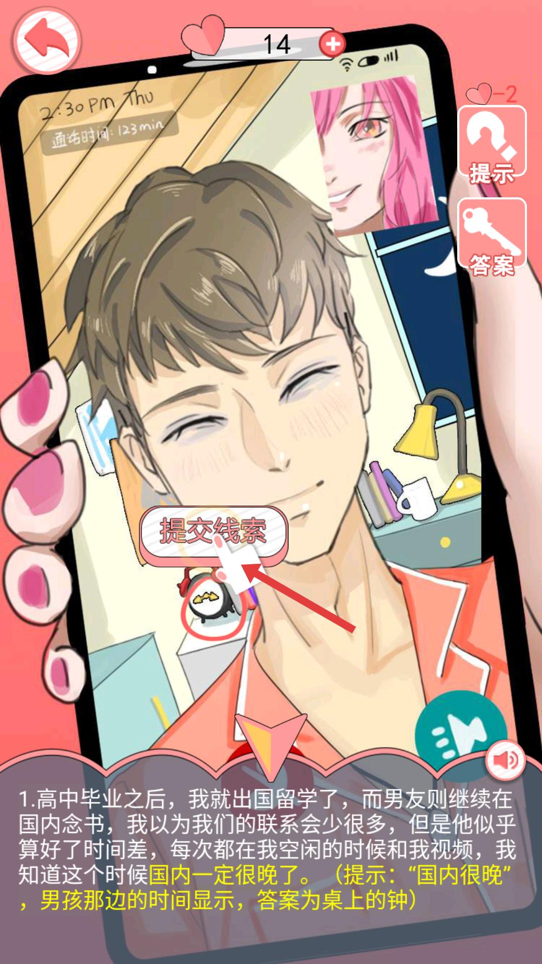 3、進入關卡后,仔細觀察場景,根據提示找到桌上的鐘這一線索,點擊提交線索,完成該步驟的任務,推動劇情發展。