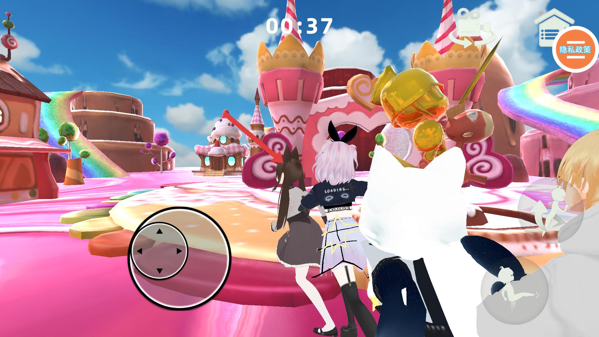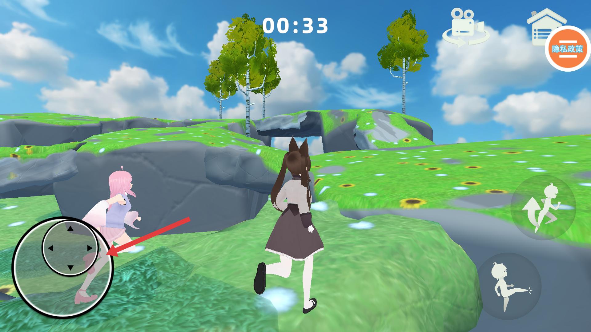 2、進入游戲后,通過左側的方向控制按鈕,操控角色在場景中移動,跟隨其他角色,探索游戲區域。