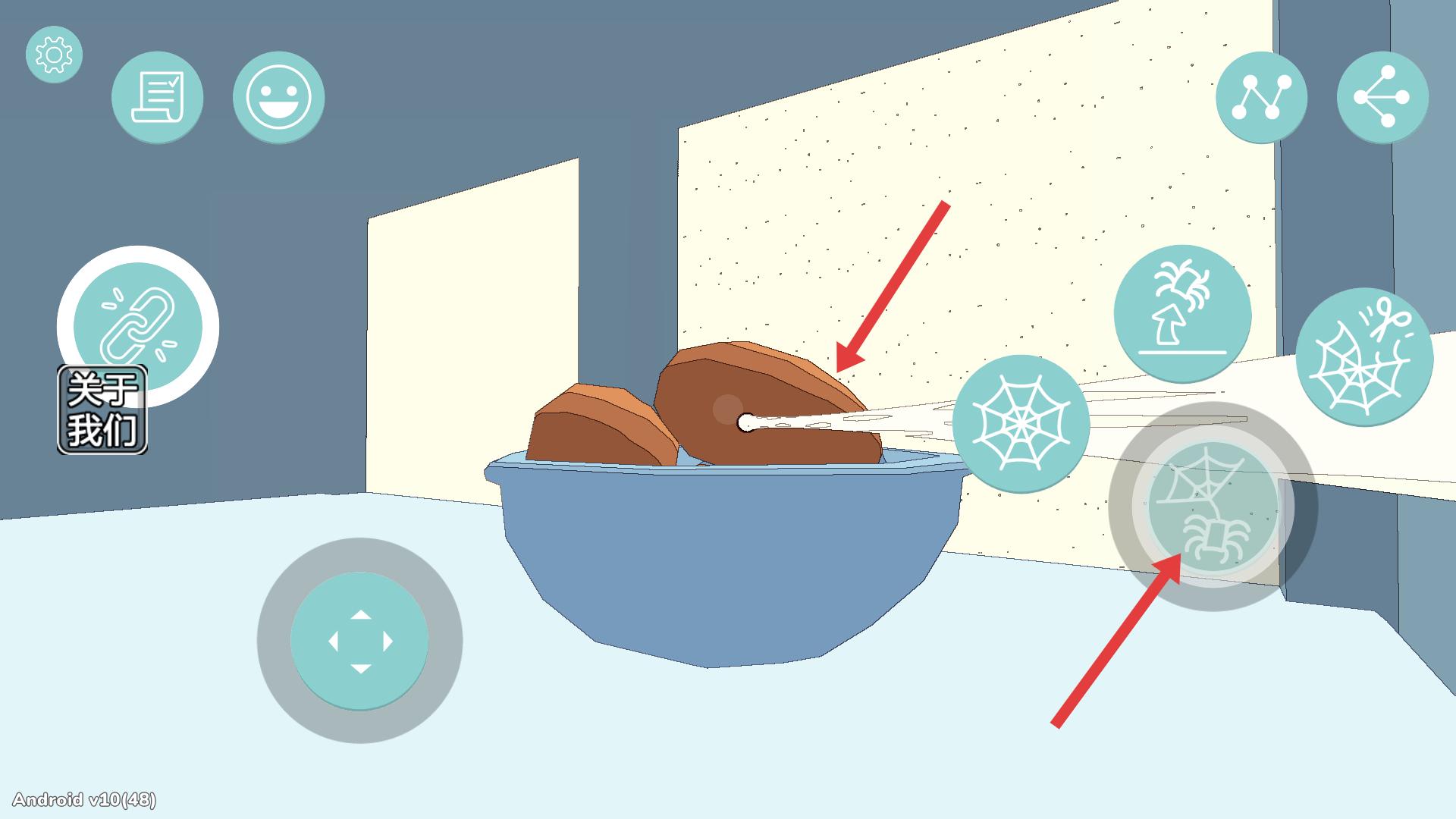 3、遇到目標物品時,點擊右側吐絲圖標,蜘蛛會吐出蛛絲,可利用蛛絲與物品產生互動,推進游戲進程。