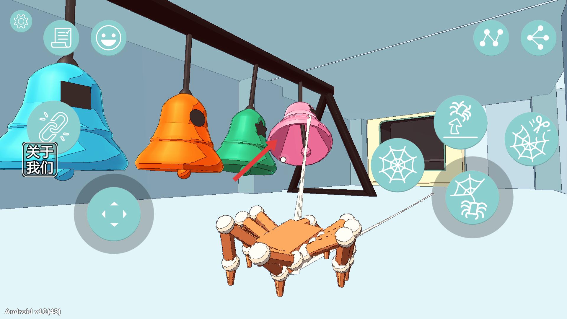 4、利用蛛絲等能力,讓蜘蛛與鈴鐺等物品互動,觸發鈴鐺等的反應,完成相應的游戲任務,體驗趣味的游戲過程。