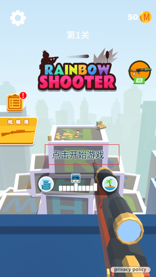 1、玩家下載游戲之后然后點擊進入,在游戲主界面,點擊圖標點擊開始游戲按鈕,進入彩虹射手游戲關卡。
