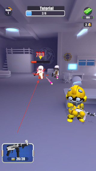 3、當準星鎖定敵人后,游戲會自動射擊,攻擊敵人注意觀察敵人頭上的血量數值變化,持續攻擊直到消滅敵人。