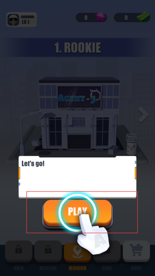 1、玩家下載游戲之后然后在游戲主界面,點擊橙色的PLAY按鈕,進入游戲關卡,準備開啟射擊冒險。