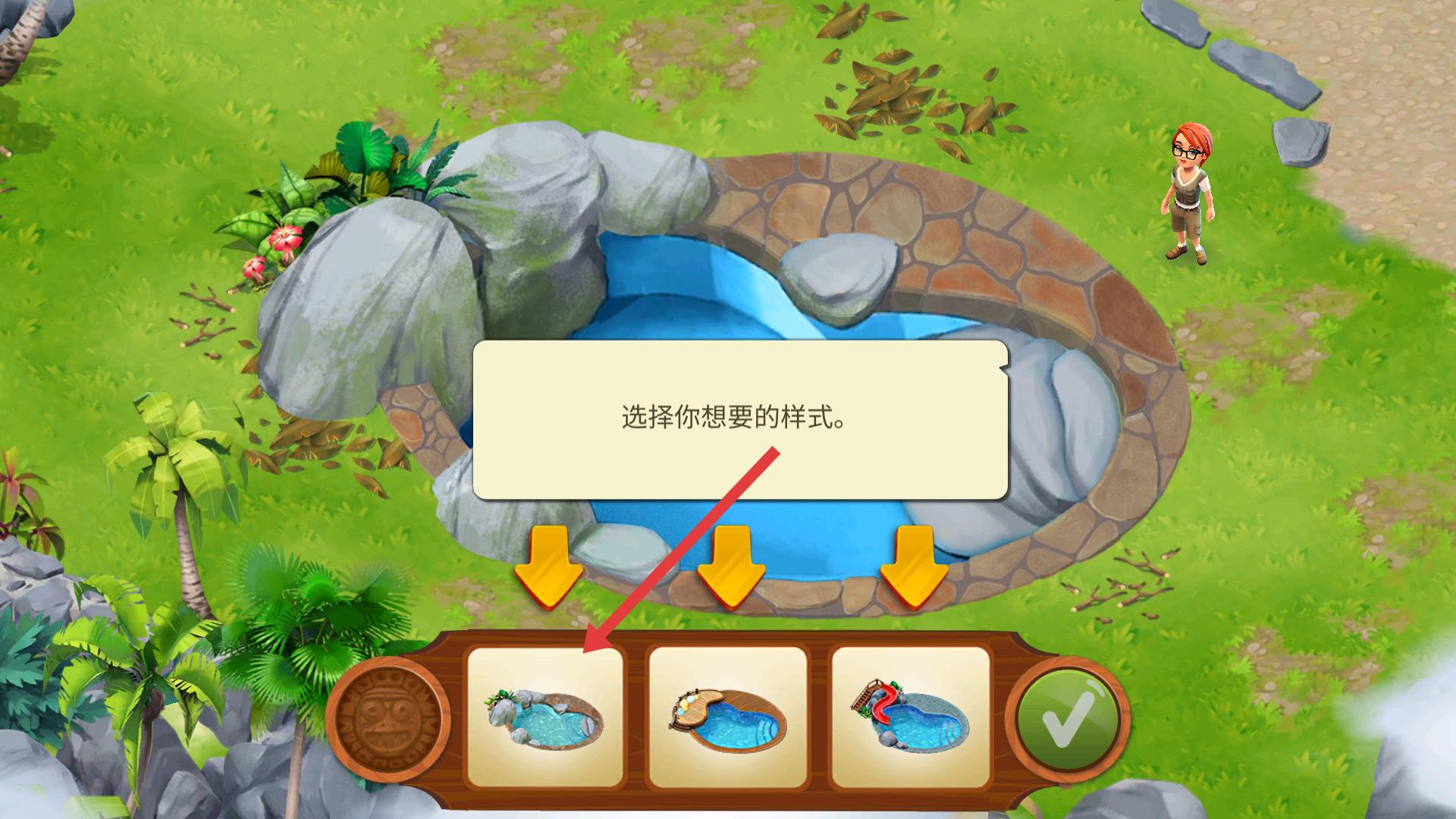 4、在場景裝飾環節,根據提示選擇想要的樣式,挑選好后點擊對勾確認,完成裝飾,讓游戲場景更符合喜好。