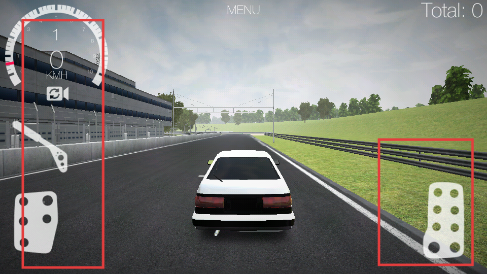 4、比賽中左側控制車輛加速等操作、右側控制剎車,根據賽道情況靈活運用加速和剎車,在彎道處合理漂移提升競速成績。