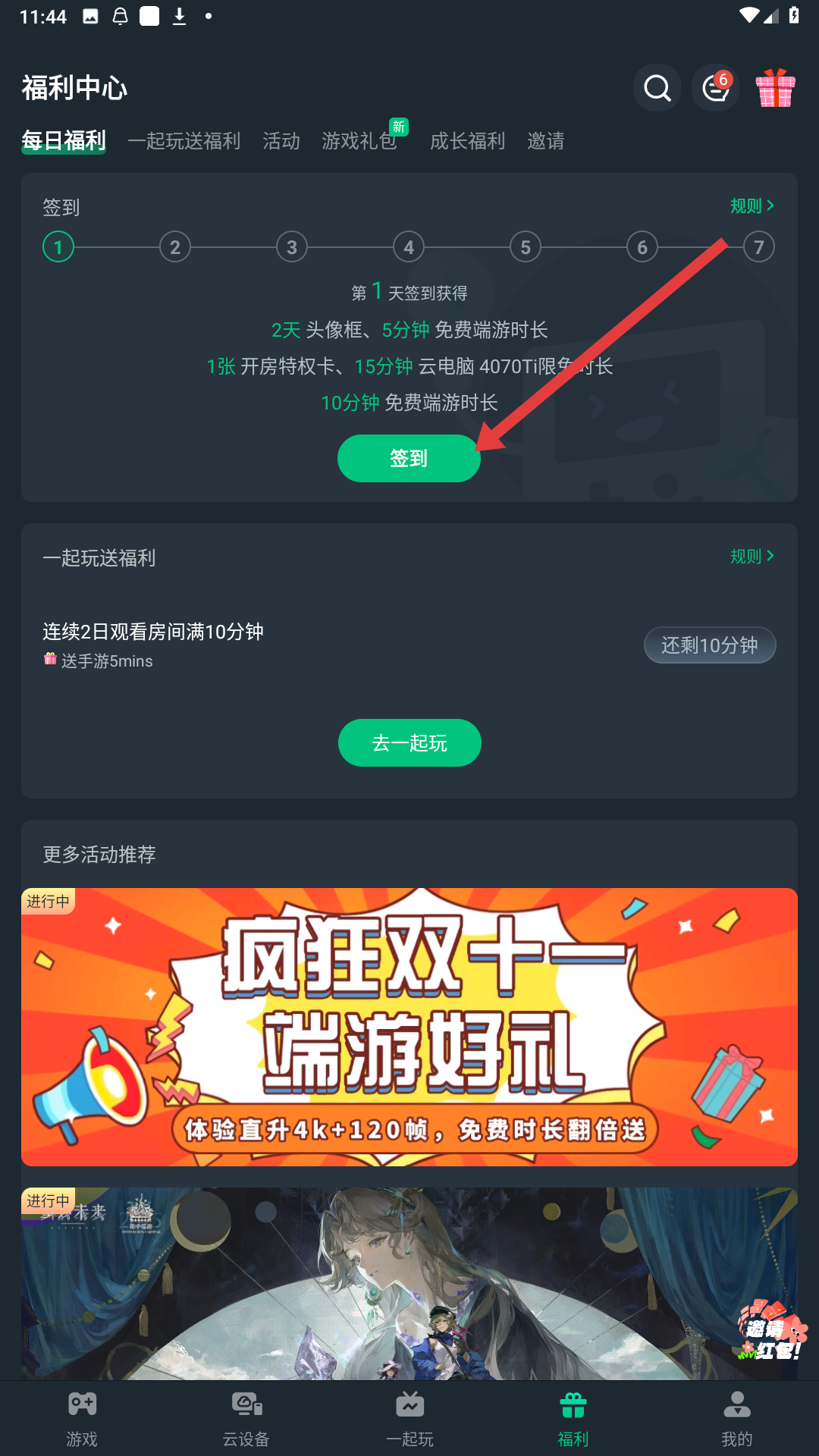 4、進入福利中心,可參與每日簽到活動,領取頭像框、免費時長、開房特權卡等福利,還可參與更多活動獲取獎勵。