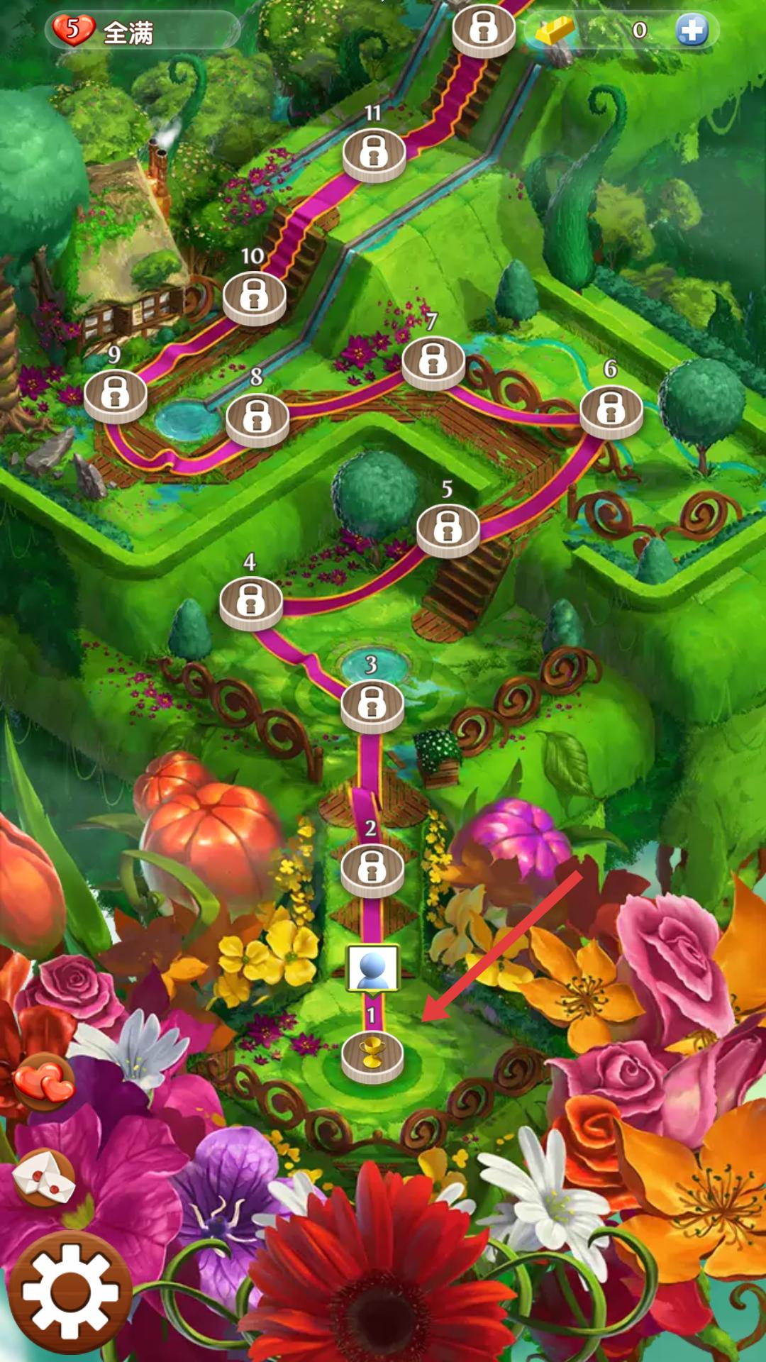 1、進入游戲關卡選擇界面,點擊標有1的關卡圖標,開始第一關的游戲挑戰。