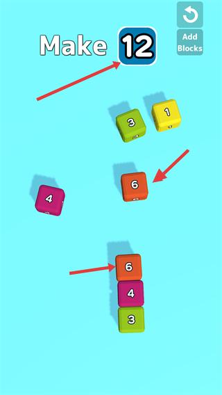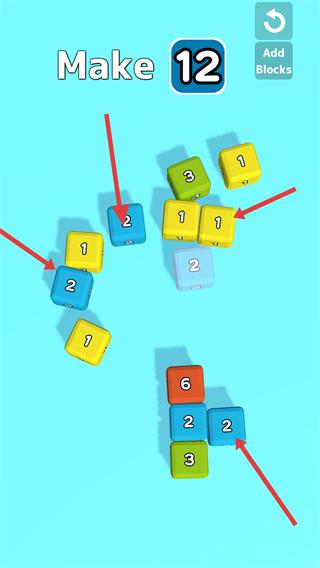 4、通過合并不同數字的方塊,逐步合成出目標數字12的方塊,完成新的合成目標,持續挑戰更高的數字合成。
