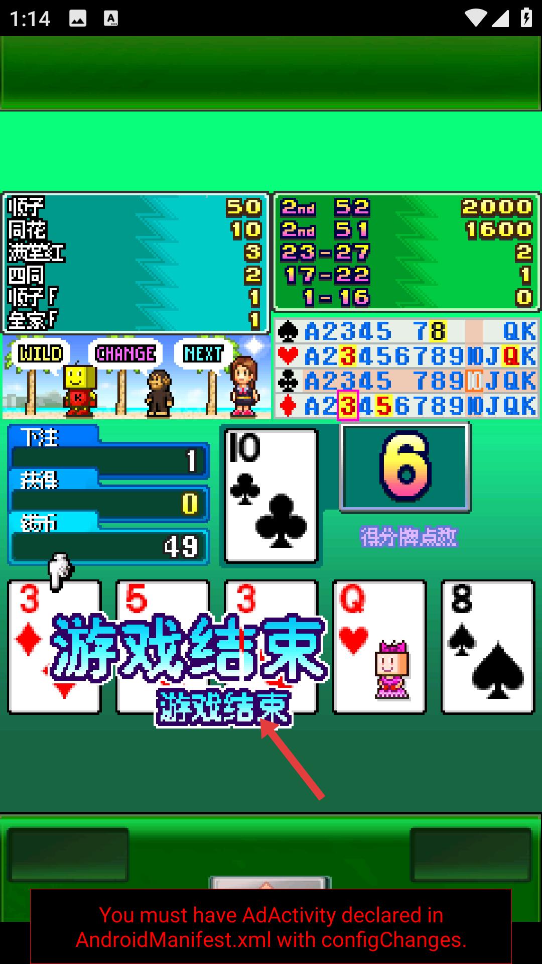 4、當屏幕顯示游戲結束時,本輪游戲結束,可總結本輪經驗,為下一次游戲做準備,繼續挑戰收集更多紙牌。