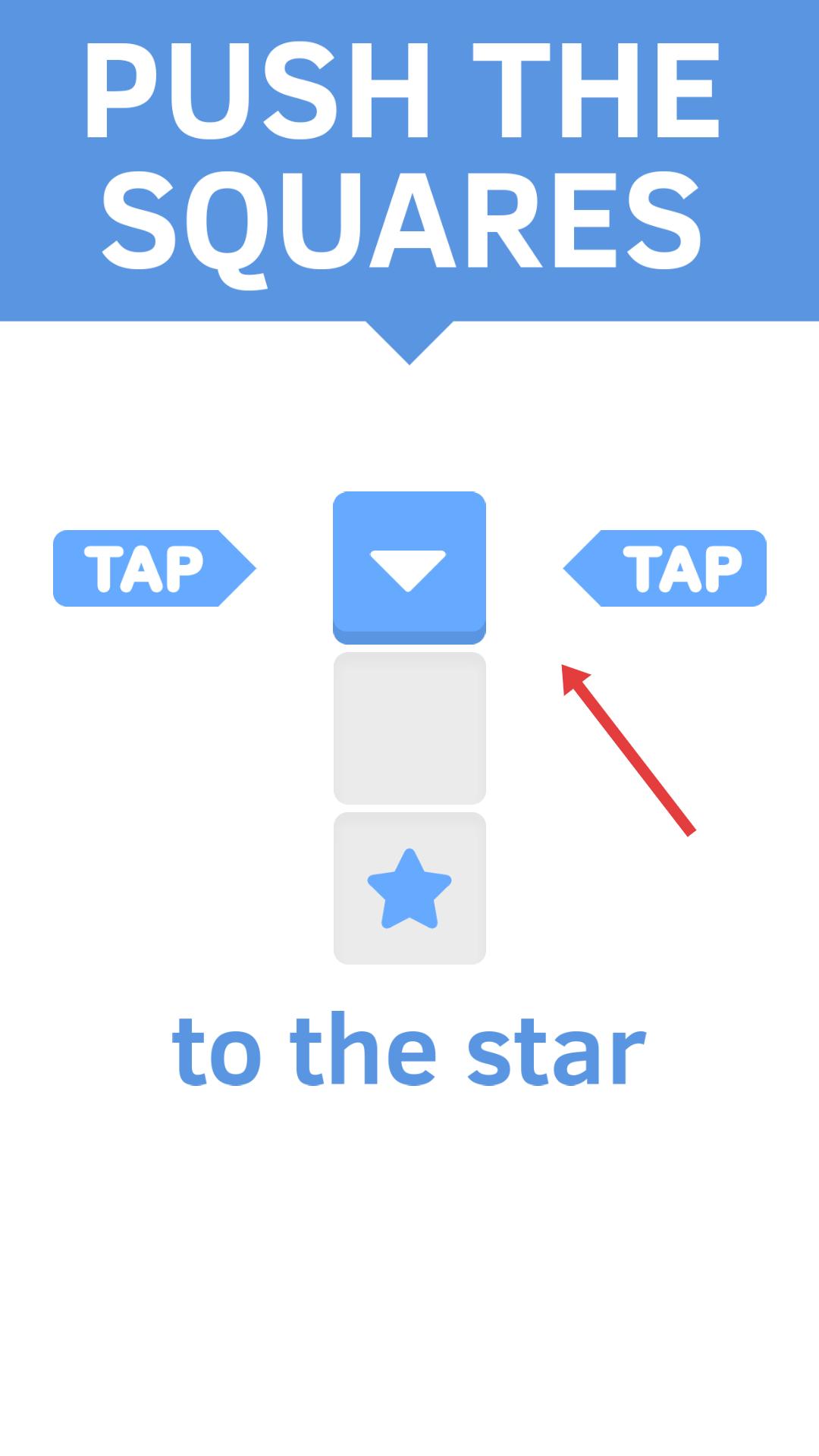1、游戲提示把方塊推向星星,左右有TAP按鈕,需點擊按鈕推動藍色方塊,讓其向帶有星星的方塊移動,完成目標。