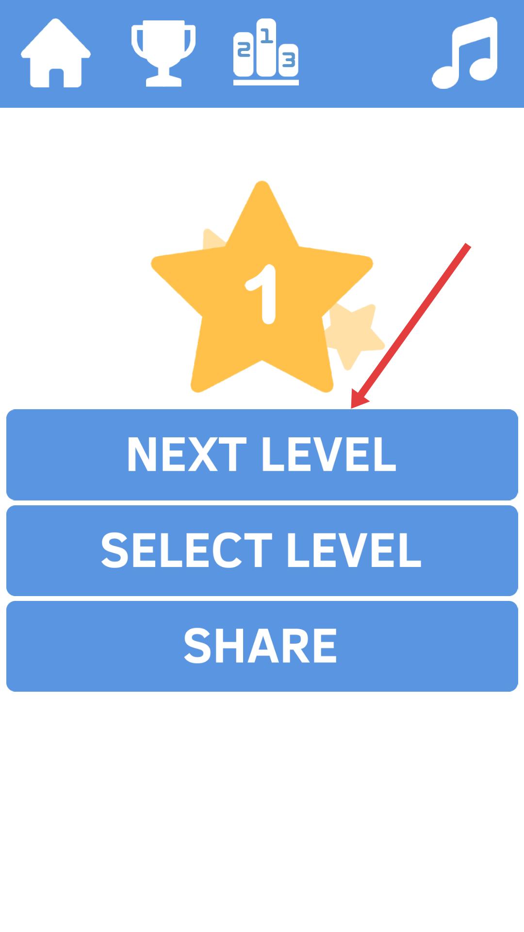 4、關卡通關后,界面顯示星星和下一個按鈕,點擊該按鈕,進入下一關,繼續方塊推動的挑戰。