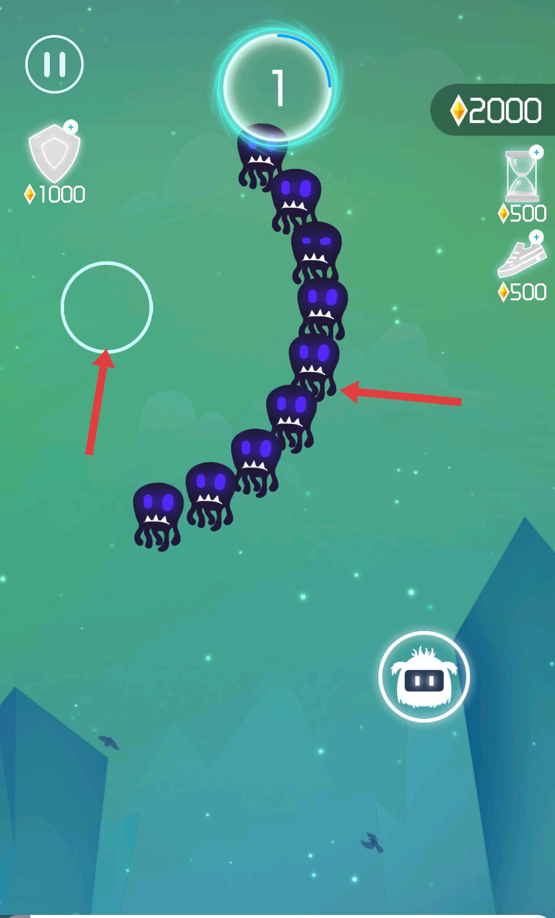 1、基礎穿梭技巧:點擊屏幕控制精靈懸停,滑動調整飛行角度,把握幽靈陣型旋轉間隙快速穿過,注意保留應急躲避的緩沖空間。