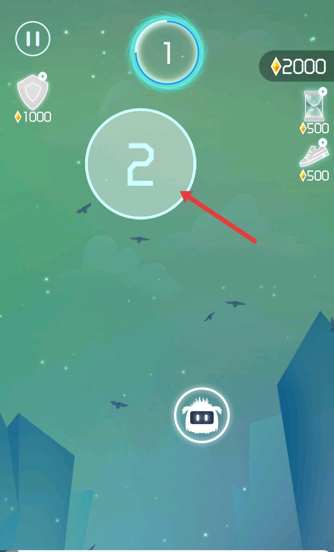 3、成功避開怪物后,界面會出現標有2的圓圈,點擊該圓圈,進入第二階段的關卡挑戰,繼續精靈的穿越冒險。