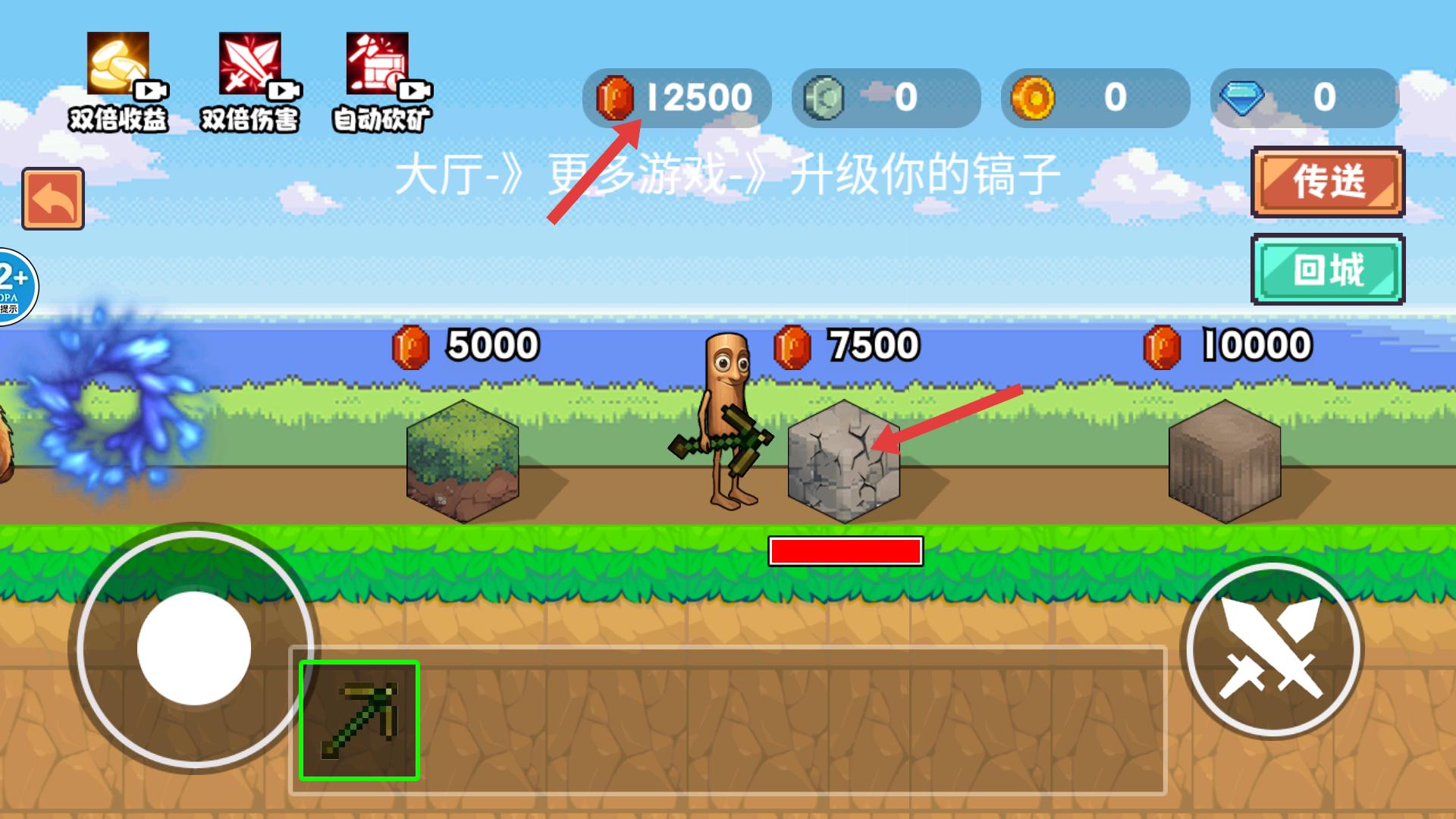1、工具進化系統:初始裝備僅為簡陋木棍,通過礦石兌換逐步解鎖鐵鎬、鉆石鎬等十二類工具,頂級鎬頭附帶自動采集功能,實現階段性成長蛻變。