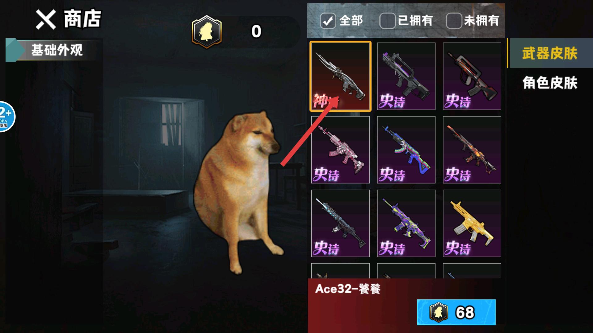 4、有不同品質的武器皮膚,像神話品質、史詩品質等,可根據擁有的貨幣等去兌換心儀的武器皮膚。