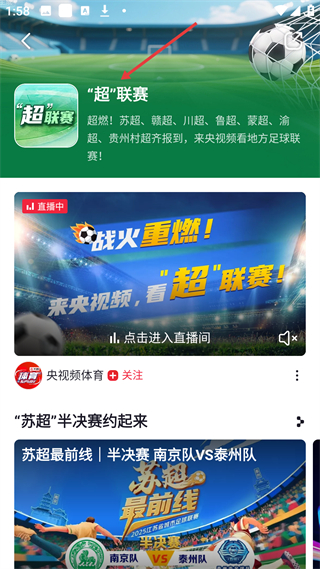 3、超聯賽頁面蘇超、贛超等地方足球聯賽齊聚,有蘇超半決賽等直播,央視頻體育賬號可關注方便球迷看賽。