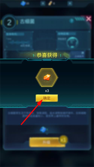 2、生產完成后會彈出恭喜獲得的界面,顯示獲得了3個鉆石,點擊確定按鈕關閉界面,繼續后續操作。