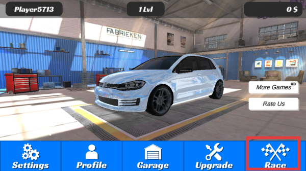 1、玩家下載游戲之后然后點擊進入在游戲主界面,點擊右下角的Race按鈕,選擇要參與的賽車比賽。