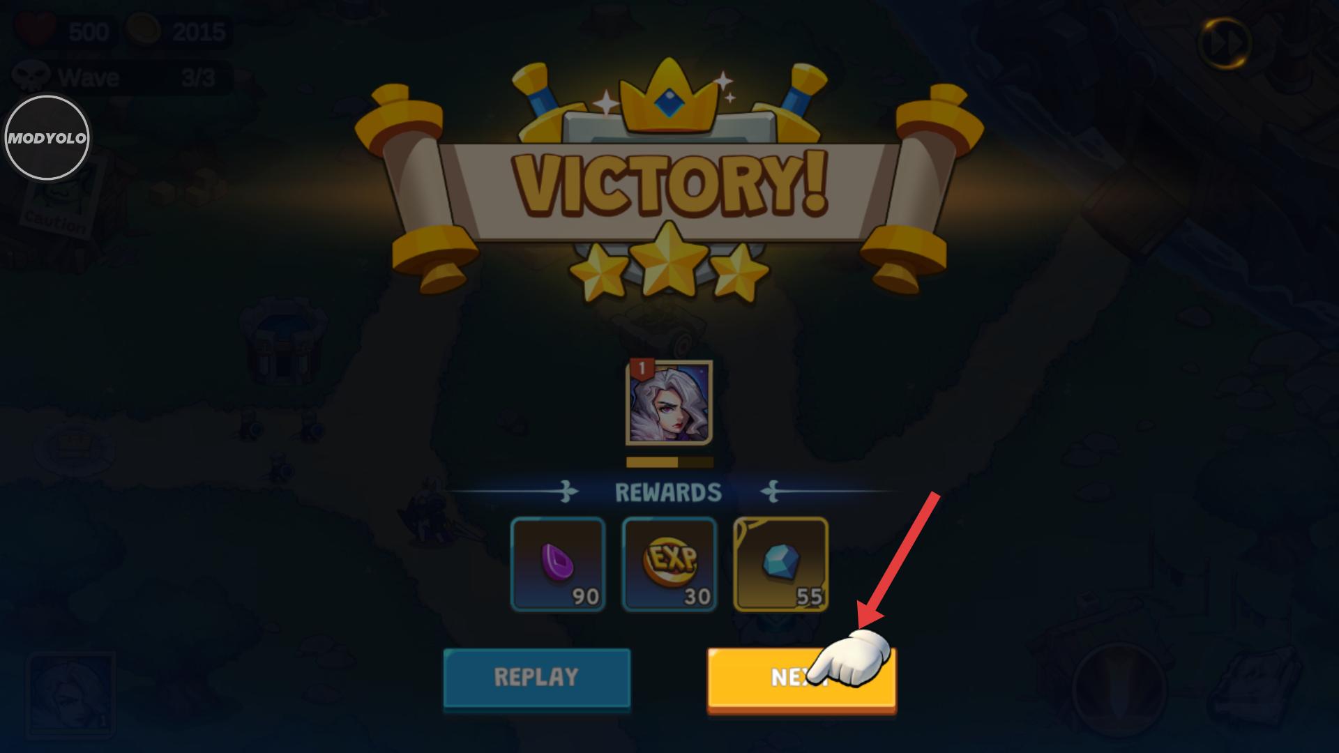 6、成功抵御所有波次敵人后,會出現VICTORY的勝利界面,點擊NEXT按鈕,即可進入下一關繼續挑戰。