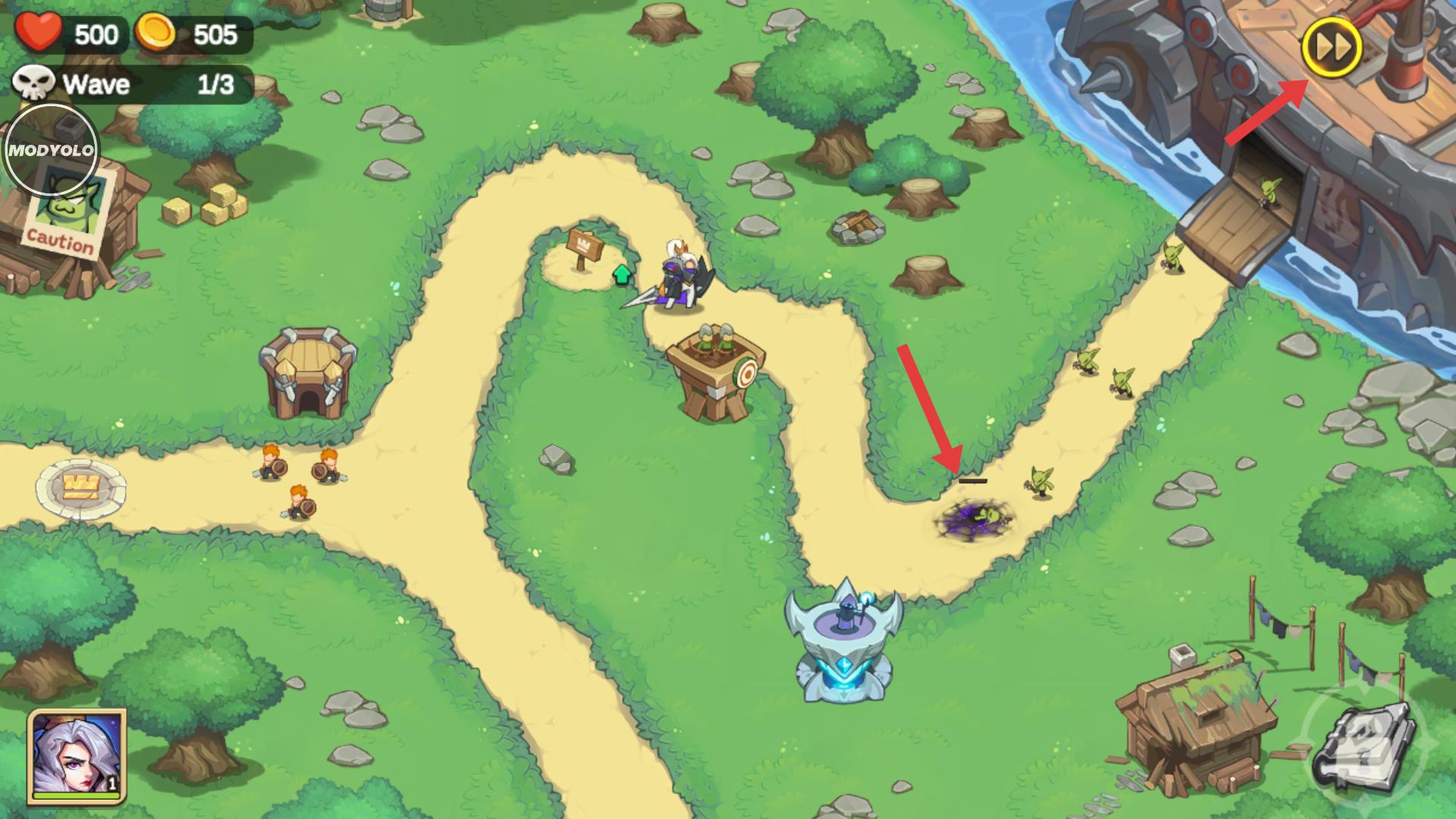 3、點擊右上角的加速按鈕,能加快游戲節奏,此時敵人會沿著特定路徑襲來,要關注敵人行進路線,做好防御準備。