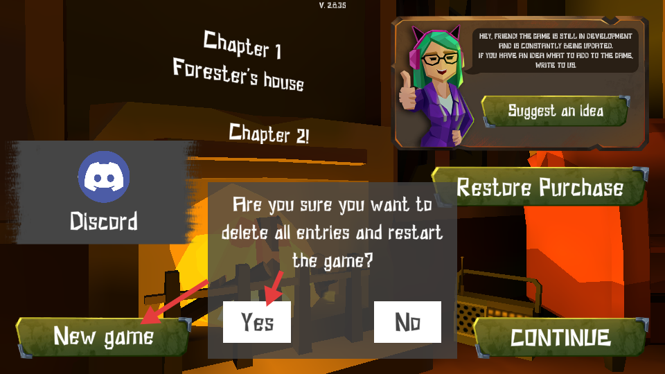 1、玩家首次開啟游戲需點擊New game按鈕,會彈出是否刪除所有記錄并重啟游戲的提示,此時選擇Yes即可開始新游戲。