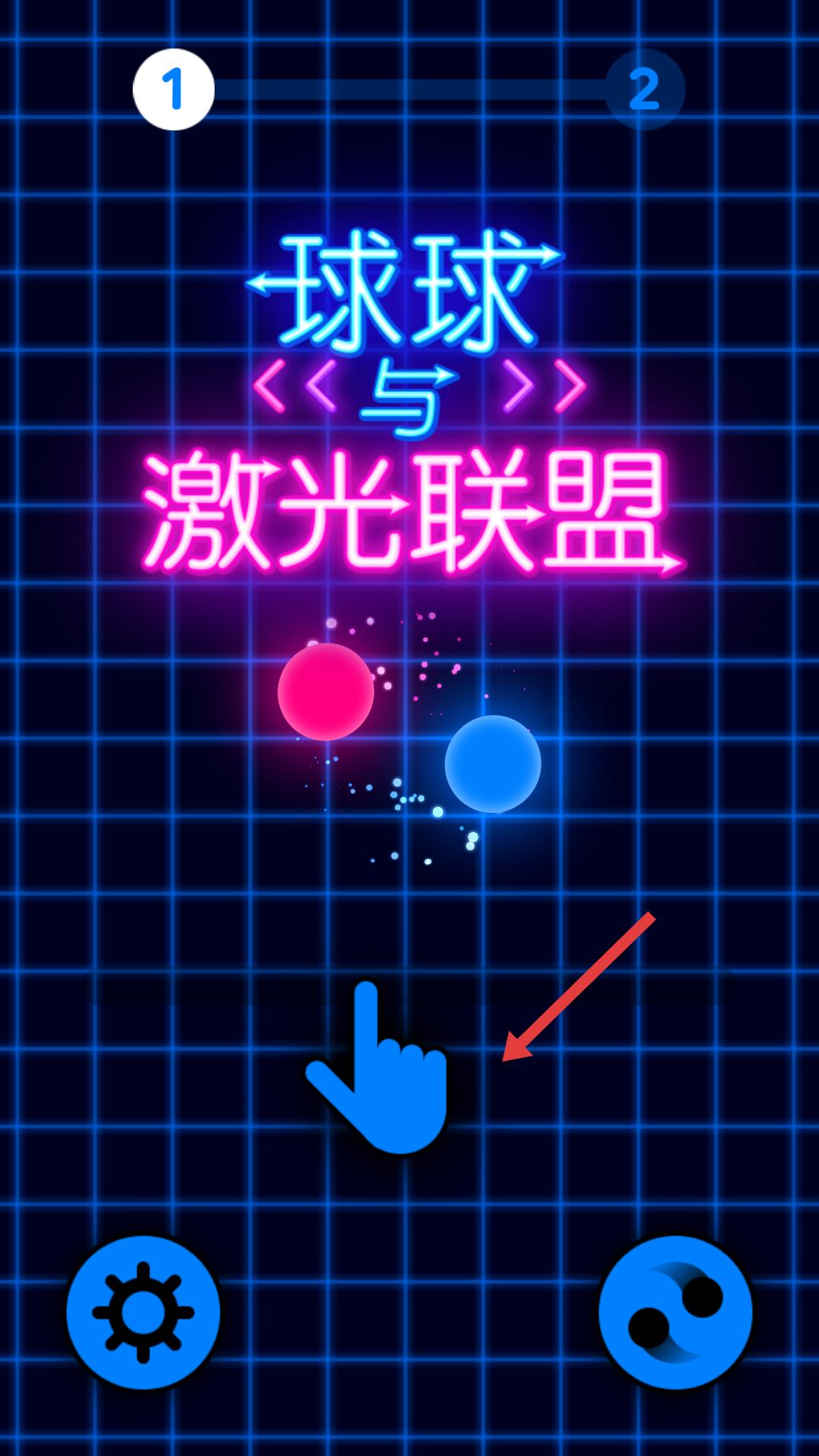 1、游戲初始界面有提示手勢,點擊屏幕,可開始游戲,進入關卡,操控球球,開啟與激光相關的冒險,體驗游戲玩法。