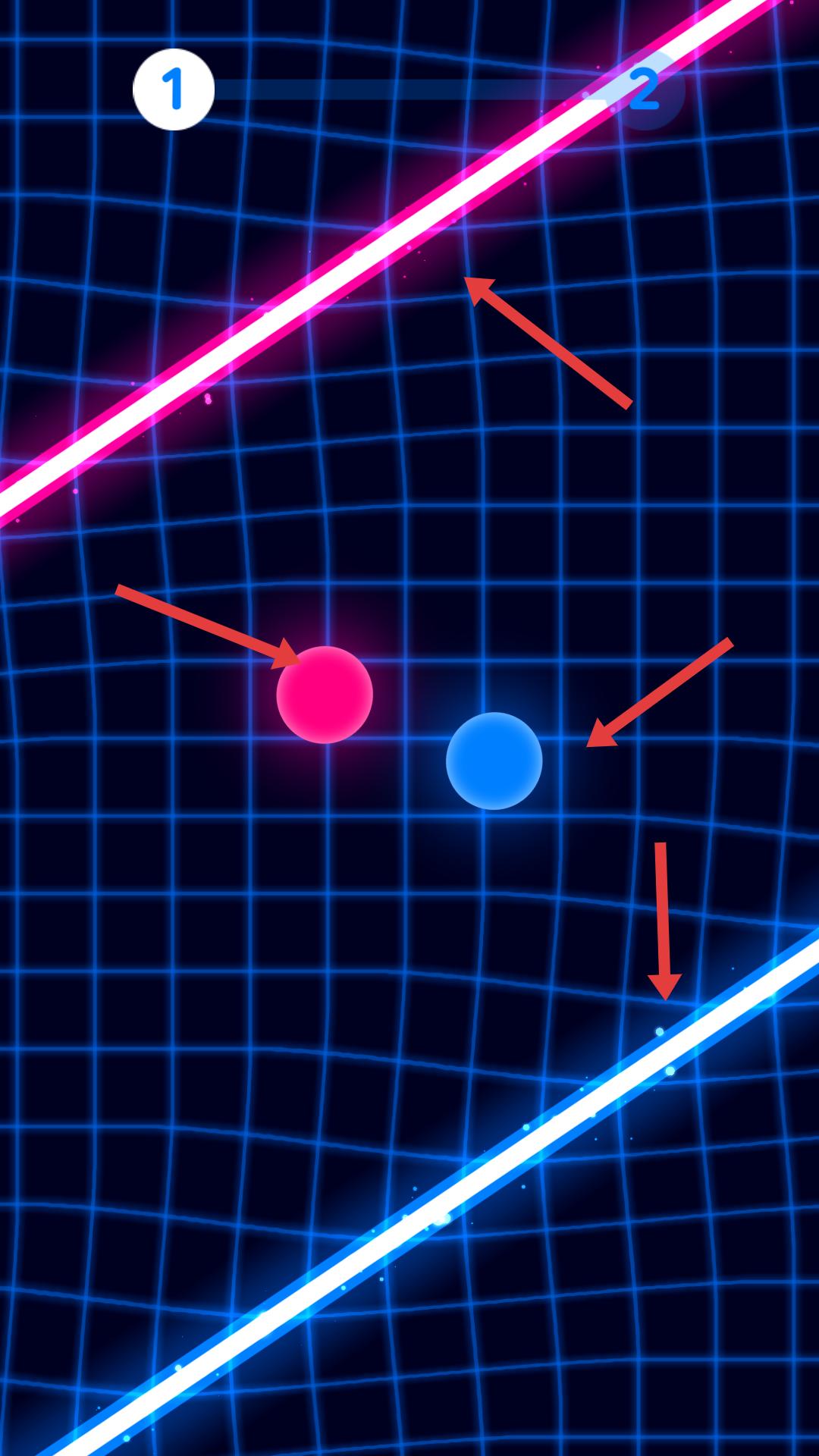 1、基礎移動規則:在屏幕上任意位置單指滑動控制球體移動,長按可蓄力沖刺,松開后沿當前方向高速滑行穿透單層激光。