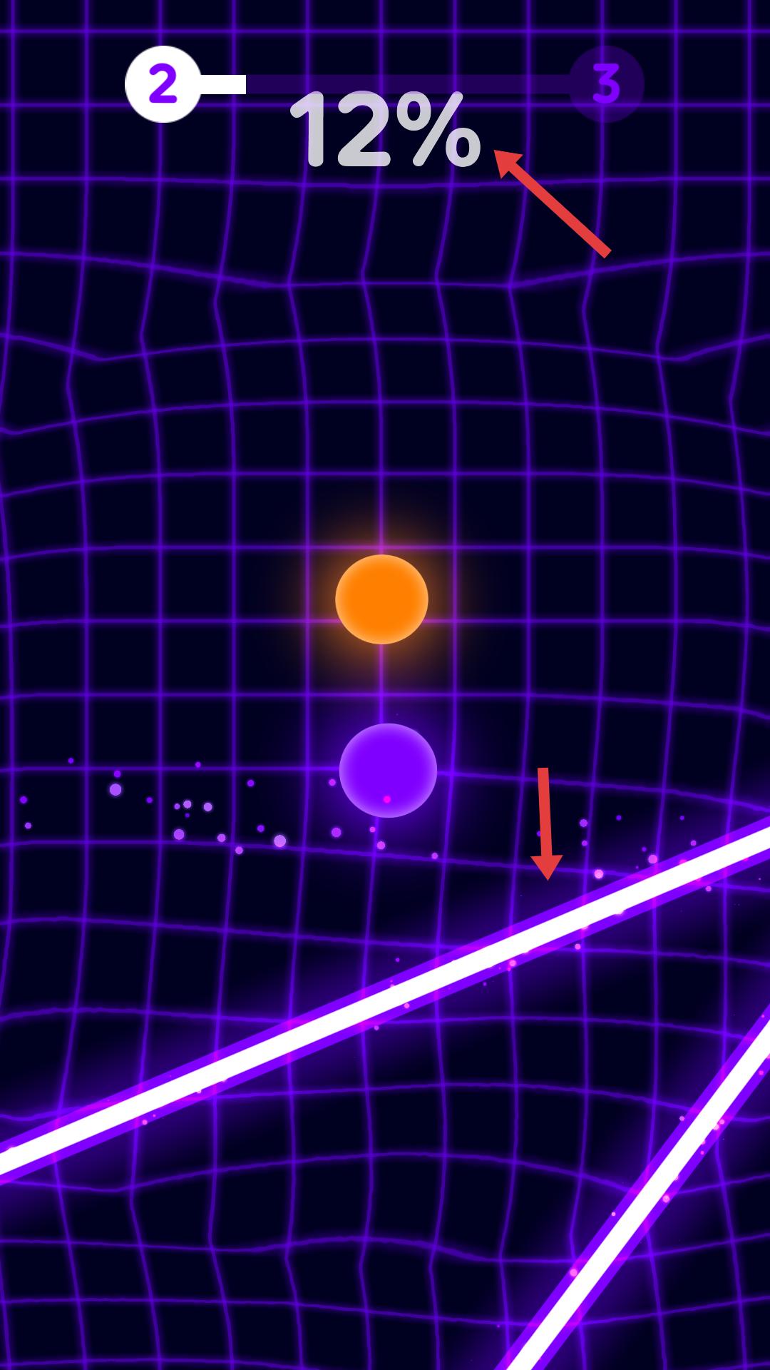 4、進入等級2,界面顯示完成進度,操控球球,應對新的激光和場景,努力提升完成進度,向等級2的完成目標邁進。
