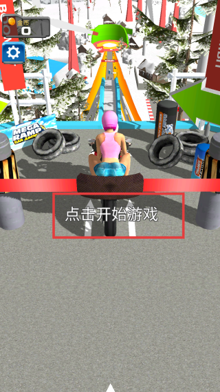 1、玩家下載游戲之后在游戲界面,點擊圖標點擊開始游戲區域,駕駛摩托車開啟坡道闖關之旅。