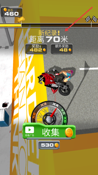 3、在行駛過程中盡可能地讓摩托車行駛更遠的距離,挑戰新的行駛紀錄,每次創造新紀錄還能獲得相應的獎勵。