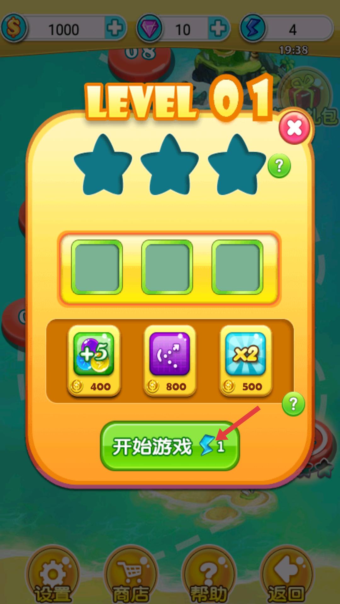 2、進入關卡01界面后,點擊綠色的開始游戲按鈕,即可進入游戲實際操作環節,開始第一關的泡泡消除挑戰。