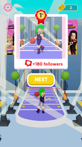 4、玩家走秀結束后,根據走秀表現獲得相應獎勵,點擊NEXT按鈕,進入下一個關卡。