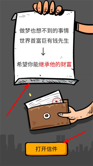 1、打開信件,得知可繼承世界首富巨有錢先生的財富,開啟首富繼承的游戲進程。