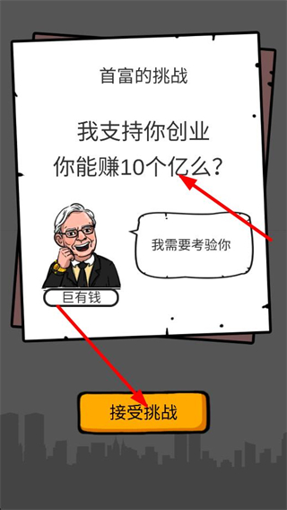 2、接受首富的有難度的創業挑戰,開啟創業賺10個億的任務,開始財富漫漫積累之旅。