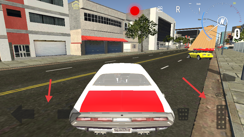 3、進入城市道路場景,利用屏幕上的方向和油門等控制鍵,駕駛車輛在道路上平穩行駛,先去熟悉城市路況。