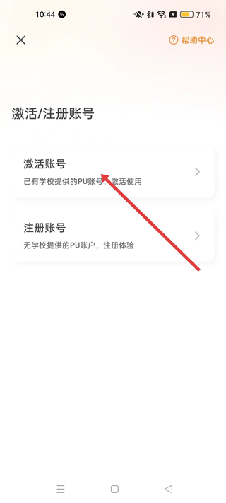 4、新用戶可選擇激活賬號或注冊賬號,若有學校提供的PU賬號可激活使用,若無則注冊賬號體驗APP功能。