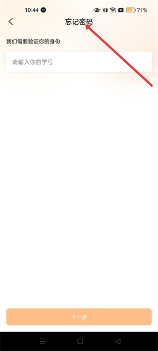 3、若忘記密碼,進入忘記密碼界面,輸入學號,點擊下一步,按照提示完成密碼重置操作。