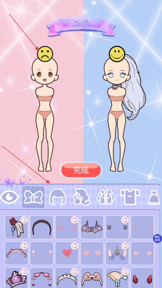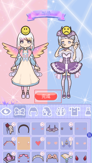 3、按照自己的審美和創意完成兩個角色的裝扮后,點擊完成按鈕,提交裝扮作品,參與人氣比拼。