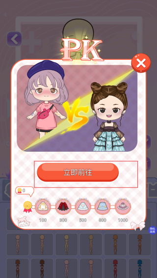 1、玩家下載游戲之后然后點擊進入在游戲界面看到PK界面,點擊立即前往按鈕,參與魔法公主裝扮的對決挑戰。