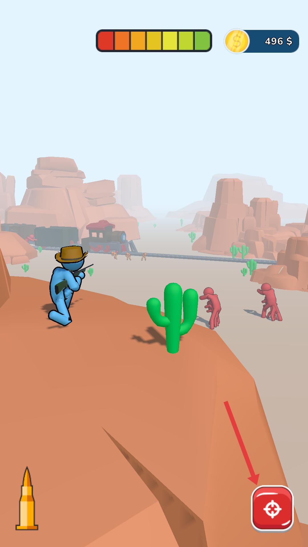 2、遇到敵人后,點擊右下角的瞄準按鈕,進入瞄準狀態,此時可更精準地鎖定敵人,為射擊做好準備。