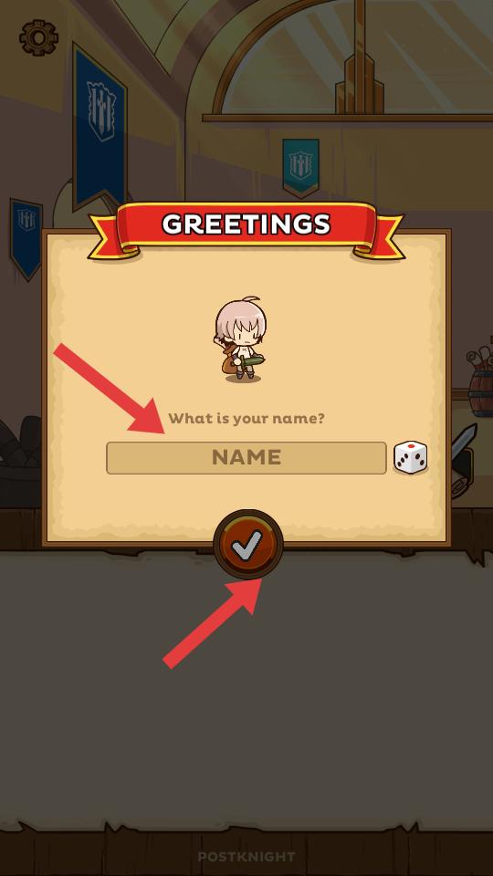 1、在游戲初始界面,點擊【NAME】輸入框填寫角色名字,確認后點擊下方帶對勾按鈕,完成角色創建。