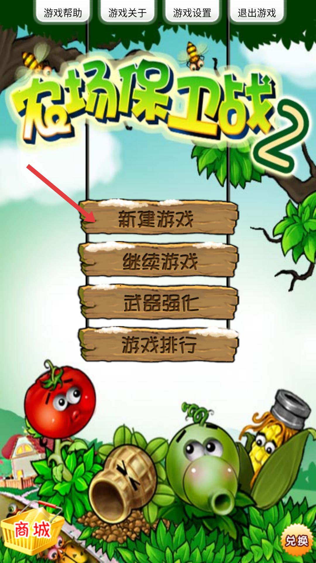 1、游戲主界面有新建游戲選項,點擊該選項,可開啟新的農場保衛戰游戲,進入游戲初始階段,開始農場保衛的冒險。