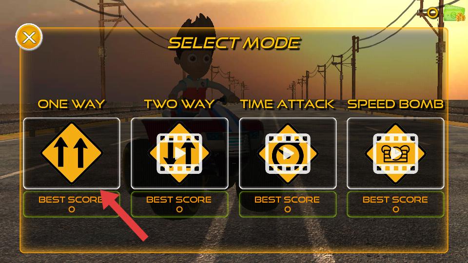 3、來到模式選擇界面,有ONE WAY,TWO WAY等多種模式可選,比如選ONE WAY模式,開啟對應賽道的賽車挑戰。
